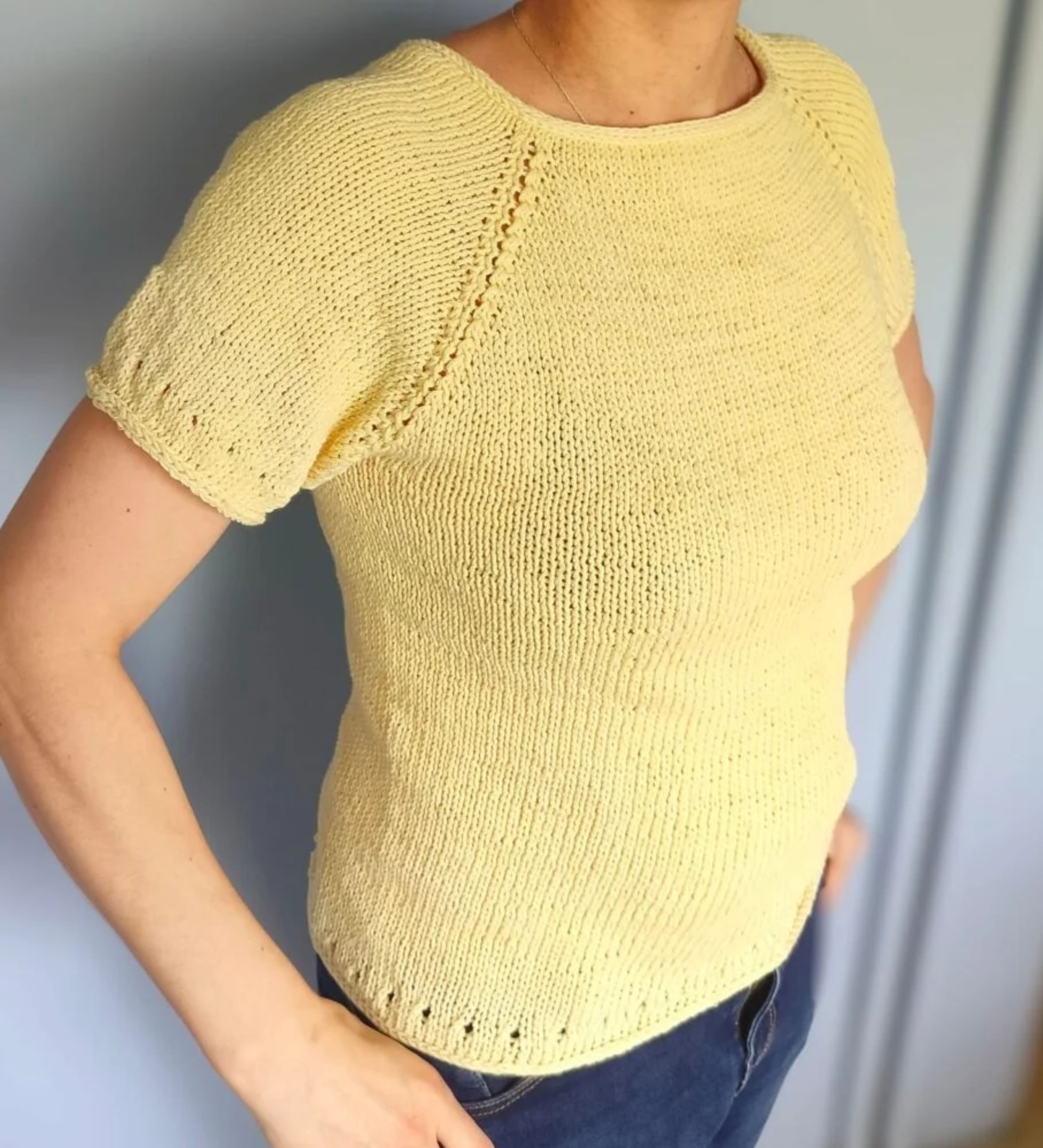 Sunny Day Top jest wzorem, który powstał szczególnie w odpowiedzi na potrzebę osób początkujących, które szukały czegoś prostego na swój pierwszy udzierg. Powstał top, który jest również przyjemny do dziergania dla doświadczonych dziewiarek. Top wykonany jest od góry do dołu, bezszwowo, samymi oczkami prawymi przerabianymi metodą kontynentalną. Projekt z użyciem ozdobnego reglanu, wykończony delikatnym prostym ażurem, dekolt i brzegi zakończone i-cordem. Do wzoru załączone są zdjęcia pomocnicze oraz filmiki instruktażowe, aby wzór był jak najbardziej czytelny i jasny dla osób, które wybrały go jako swoją pierwszą próbę dziergania letniego topu. Właśnie początkującym wzór ten jest szczególnie dedykowany.